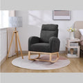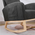 Product Name: Contemporary Rocking Chair Solid Wood Leg Rocking Chair, Upholstered Nursery Gliding Rocking Chair, Comfortable Armchair with Side Pockets, High Back Living Room Lounge Armchair (Dark Grey, Teddy Bear)