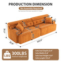 LY-029 ORANGE COMPRESSION SOFA 4-seater Combined Sofa, Wood Grain Chenille Fabric, Full Sponge Compression Sofa,combined Sofa With 2 Pillows For Living Home Furniture Apartment