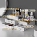 Partitioned Storage: Our makeup cabinet has three drawers and several separate compartments, providing ample space for all your makeup and skincare essentials. This makeup storage can accommodate tall bottles of skincare products, makeup brushes of various sizes, lipsticks, perfumes, and more. The drawers glide smoothly for quick access to items.