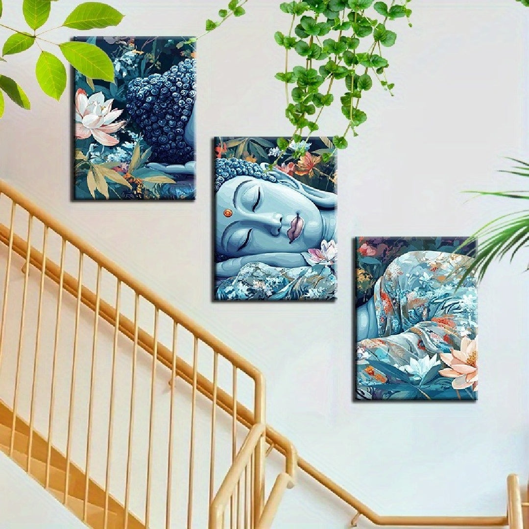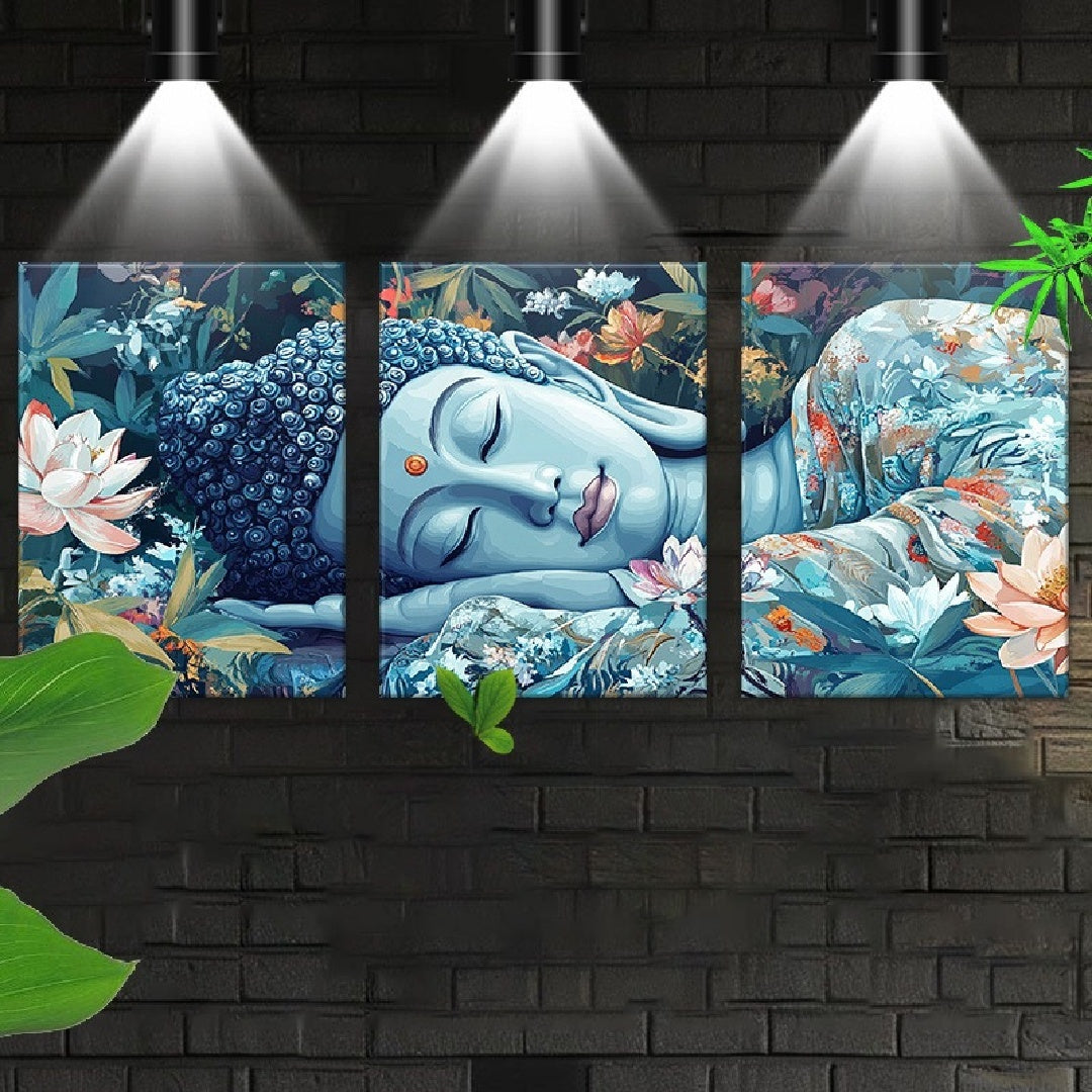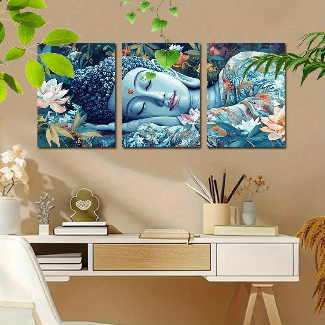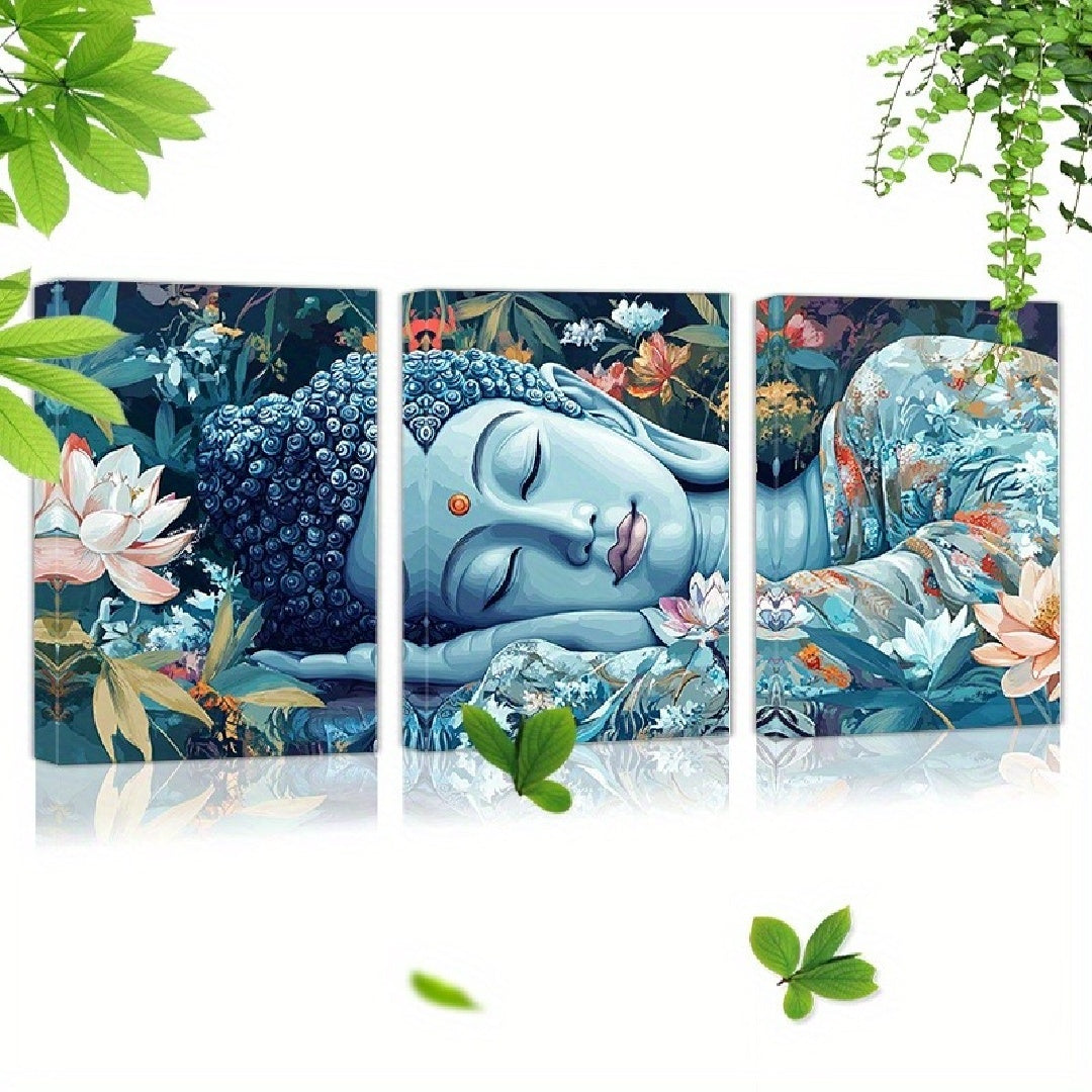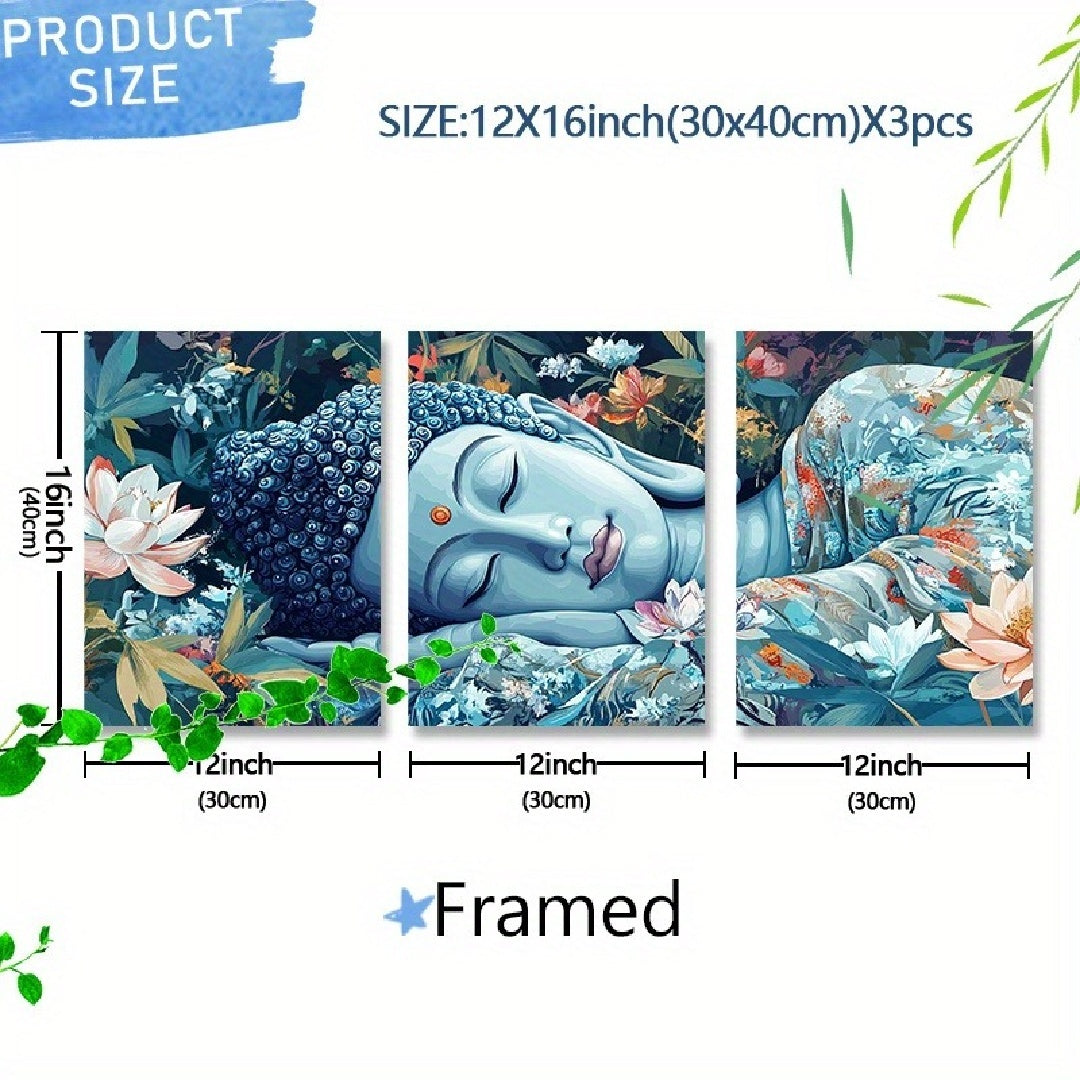 Mentally Compassionate Buddha 3pcs Framed Canvas Wall Art Set - Ready To Hang, Perfect For Living Room, Bedroom, Or Office Decor