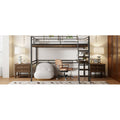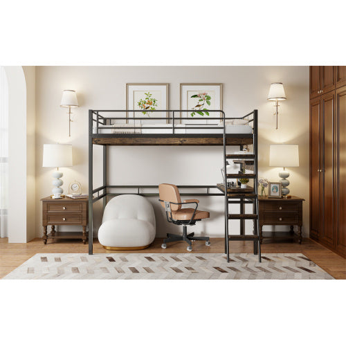 Product Name:Hochbett, 90*200cm , Ohne Matratze, Bett mit Schreibtisch, Regale, Geländer, Leiter, Eisenrahmen, Schwarz