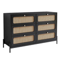 Modern Cannage Rattan Wood Closet 6-Drawer Dresser Wood Storage Cabinet Sideboard For Bedroom, Livin