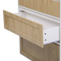 - Material & Craftsmanship Crafted from MDF melamine board with a one-piece structure, the cabinet features a two-tone color design on both the body and drawers. The smooth, wear-resistant surface is moisture-proof and stain-resistant, ideal for high-use areas like kitchens or entrances. It maintains its aesthetic appeal over time.