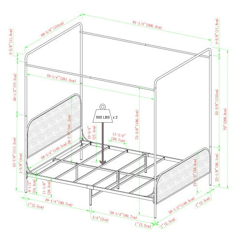 Product Name:Modern Metal and Wood Canopy Queen Bedframe – Smoked Oak