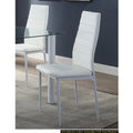 Ultra-modern styling is exemplified with the design of the Florian Collection. The black faux leather covered seat of this dining chair furthers the contemporary look of your dining space. PRODUCT DIMENSIONS: Overall Dimension: 16.5" x 19.75" x 38.5"H Seat Width: 16.5" Seat Depth: 15.75" Seat Height: 17.75" Listing Includes: Set of 2 Side Chairs Only. Dining Table: Not Included. Simple Assembly Require