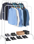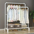 Multifunctional Coat Clothing Double Rod Hanger With Shelf Freestanding White