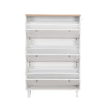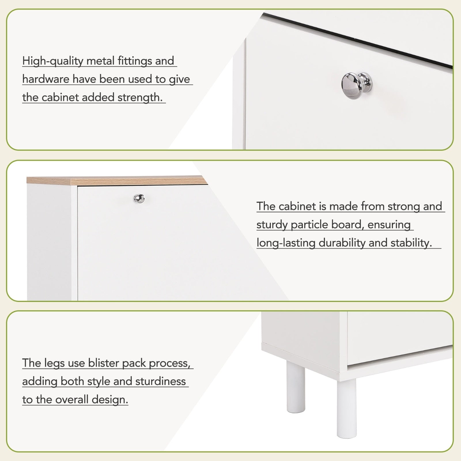 With its sleek and stylish design, this shoe cabinet is the perfect addition to any home. Constructed with smooth lines, the cabinet has cylindrical wooden legs and wood grain finished top panel, adding a touch of natural beauty and warmth to the overall look.