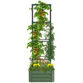 Outsunny Galvanized Raised Garden Bed, 24 X 24 X 11.75 Outdoor Planter Box With Trellis Tomato Cage And Open Bottom For Climbing Vines, Vegetables, Flowers In Backyard, Garden, Patio, Green