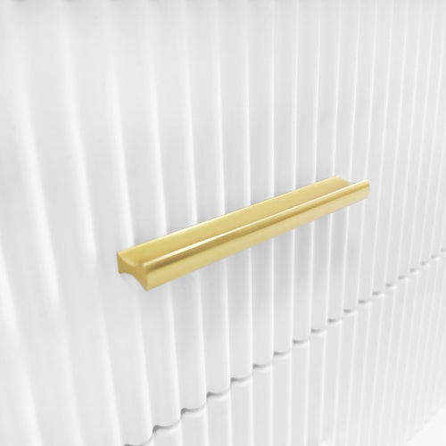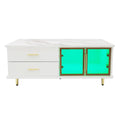 Product Name:Couchtisch, Beistelltisch mit Tür aus gehärtetem Glas, Schubladen mit Wellenstruktur, goldenen Griffen und Beinen, Tischplatte mit Marmorstruktur.