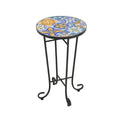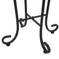 - With its vibrant tile top and scrolling,this outdoor side table brings plenty of French country character to your porch or deck. Its sleek, curved frame is crafted from powder-coated steel with a matte black finish, and it has a weather-resistant design that stands up to UV rays and the occasional rainstorm. The ceramic surface showcases a charming floral design in distressed hues of your choice. We love that the leveling legs keep it from shaking on uneven ground.