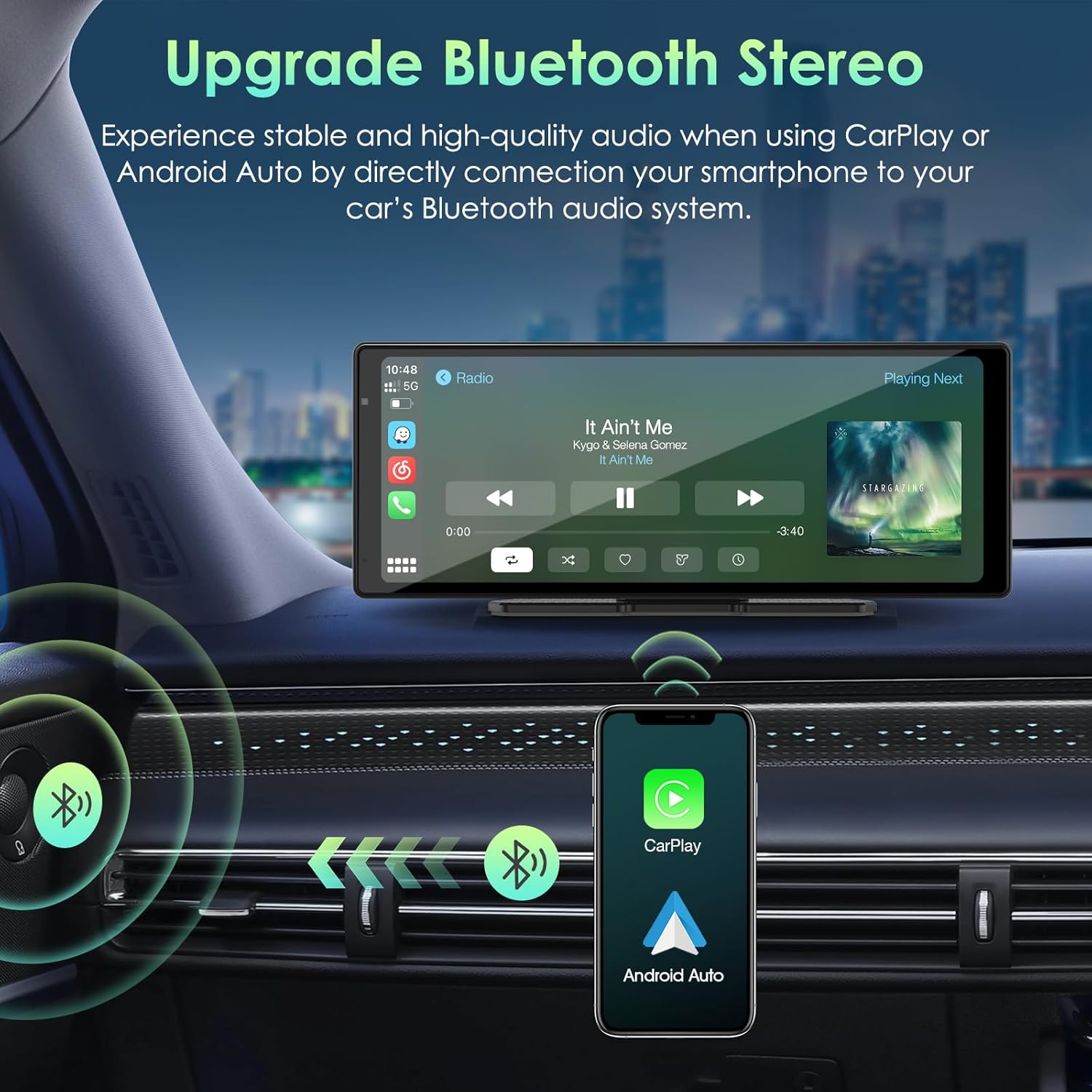 🚗 Wireless CarPlay & Android Auto | Supports both wireless/wired CarPlay & Android Auto. Wired mode uses USB. Allows access to maps, music, video, and Siri/Google voice control. |