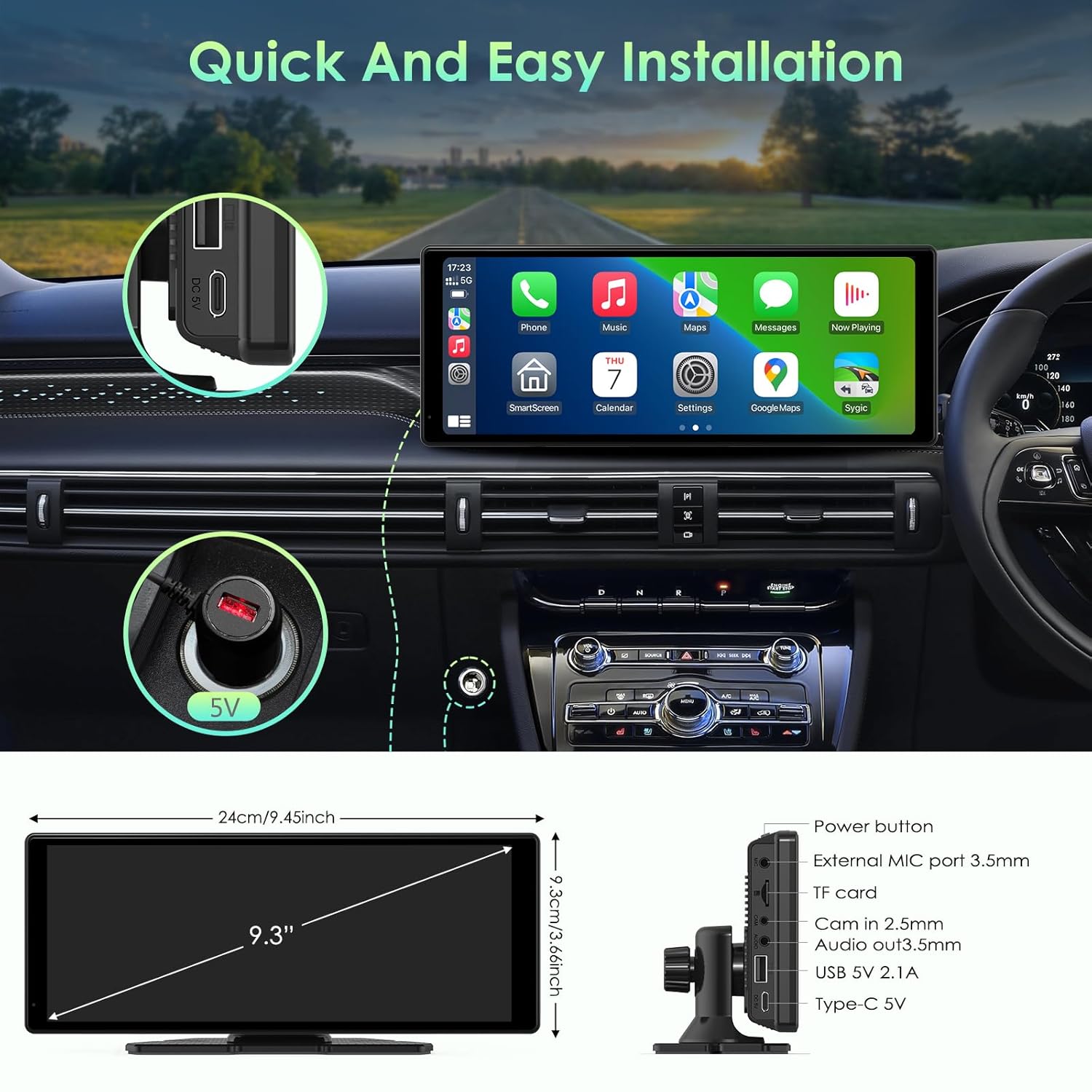 9.26" Wireless Protable Carplay&Android auto,Portable Carplay Box Screen GPS Navigation for Car, Car Play Screen for Car with Bluetooth, AirPlay, AUX/FM, Siri for All Models