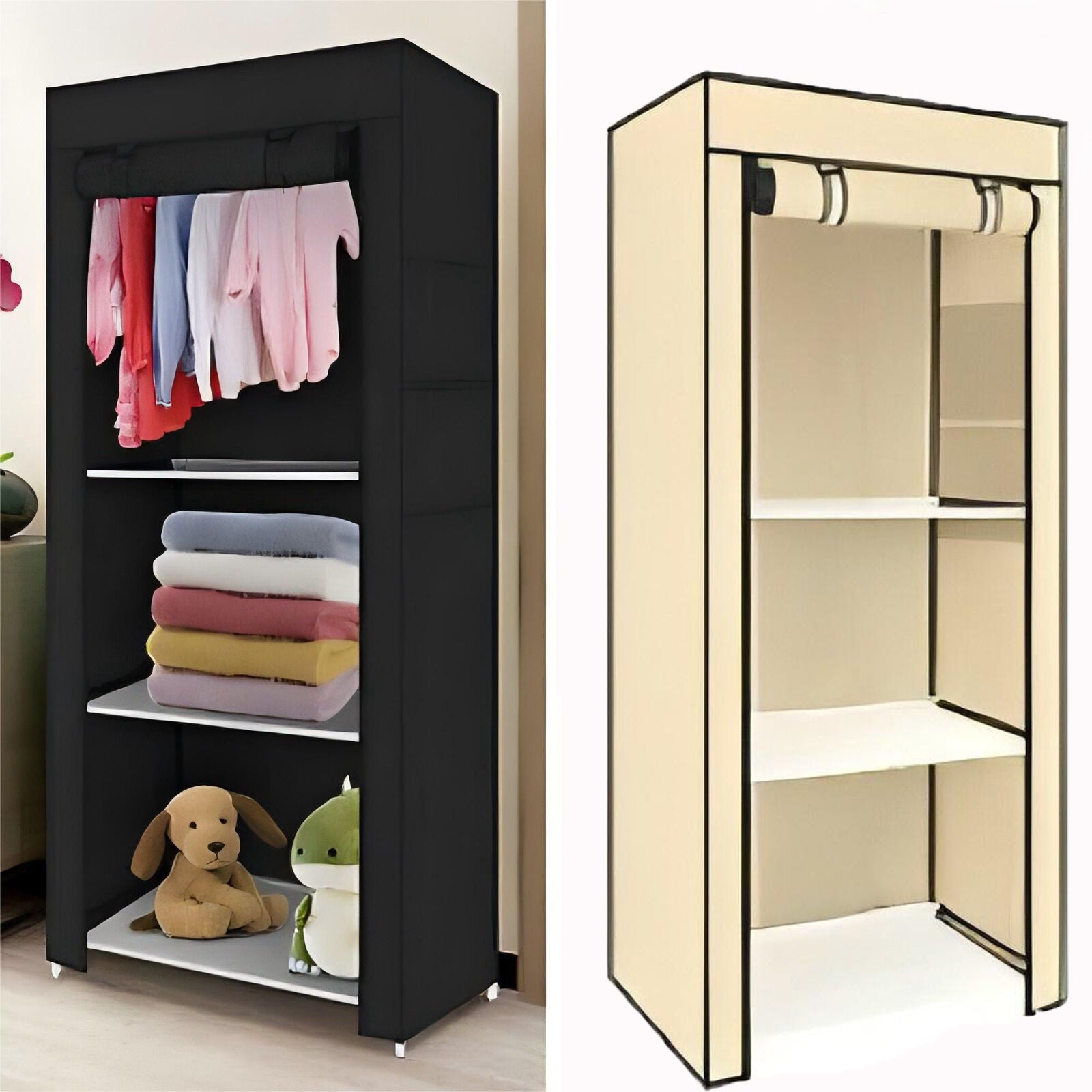PRACTICAL FABRIC CANVAS WARDROBE HANGING RAIL SHELVING CLOTHES STORAGE CUPBOARD