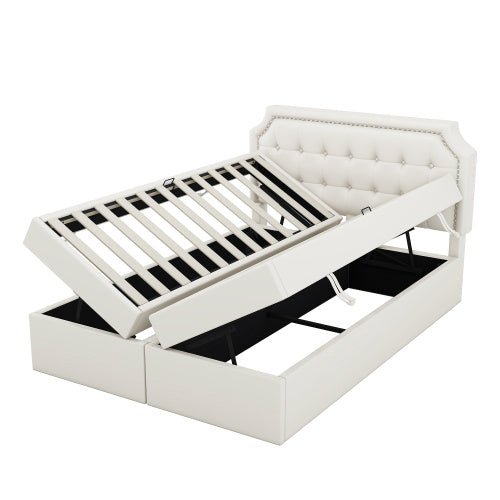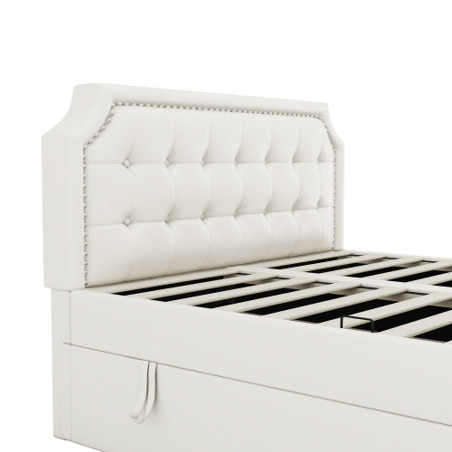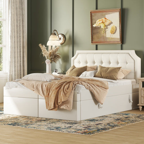Product Name:140x200cm Polsterbett, Doppelbett mit Lattenrost aus Metallrahmen, Großer Stauraum, Beidseitig zu öffnen, Weiß