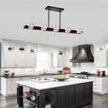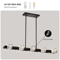 Rectangle Chandelier For Dining Room, 10-Light Black Farmhouse Linear Pendant Light Fixture, Modern Crystal Hanging Lighting Chandelier For Lobby, Kitchen, Bedroom, Living Room, Conference Room, Home