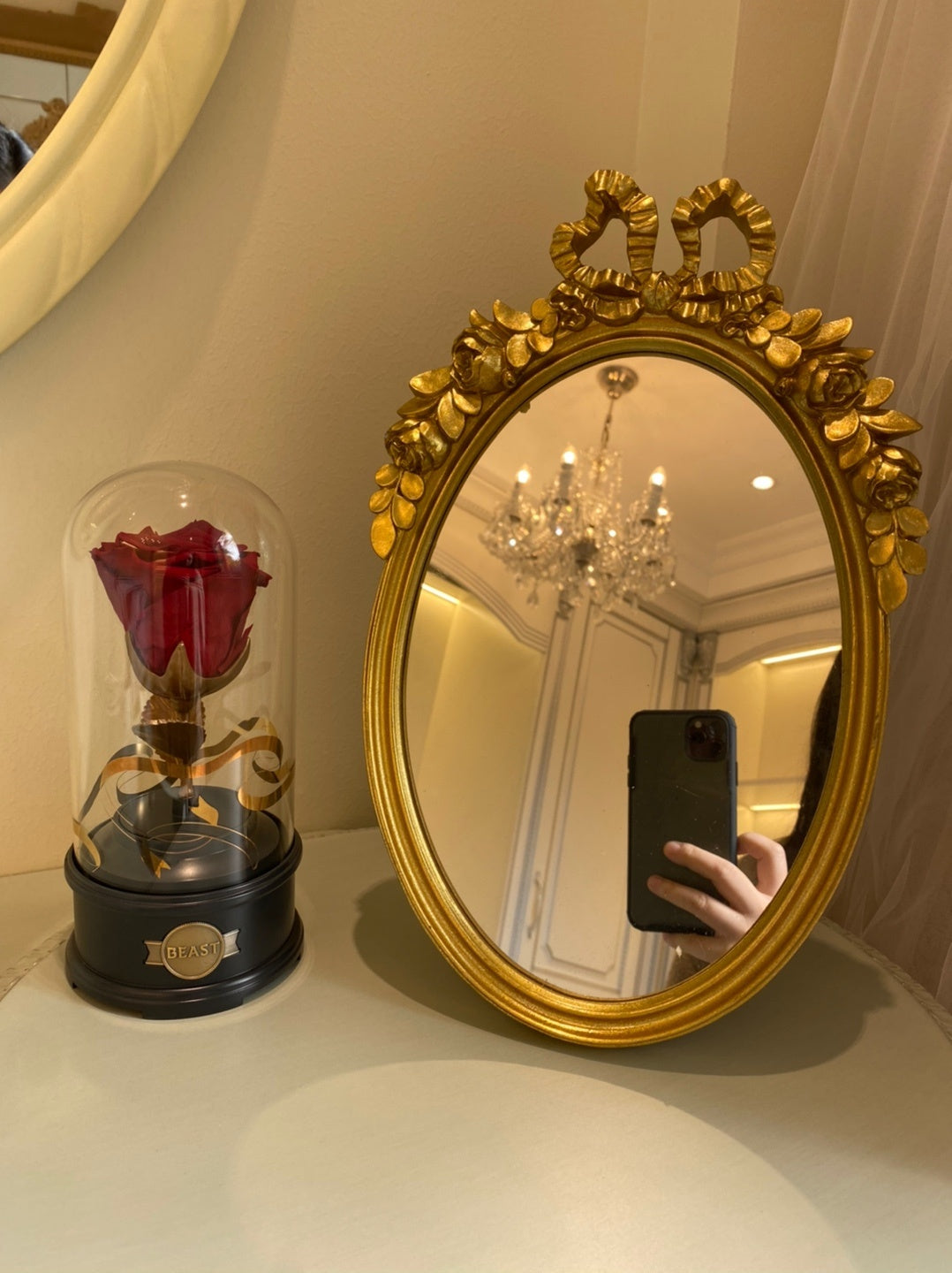 It can be used as a mirror decoration or as a tray storage ornament
