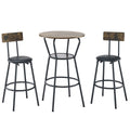 Product Name:Round bar table and stool set with shelf, upholstered stool with backrest, Rustic Brown, 24.17"W x 24.17"D x 36.02"H