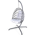 Swing Egg Chair With Stand Indoor And Outdoor Rattan Patio Basket Sling Chair With C-bracket, Patio Wicker Folding Sling Chair