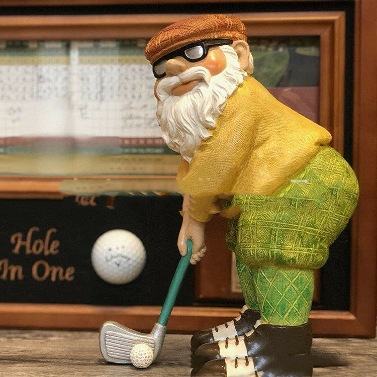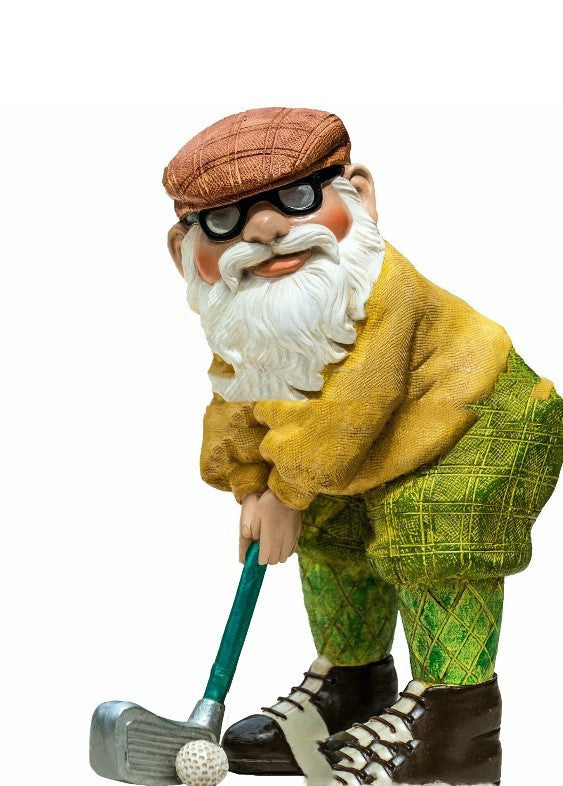 The Garden Is Decorated With Statues Of Golfing Gnomes