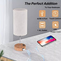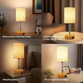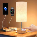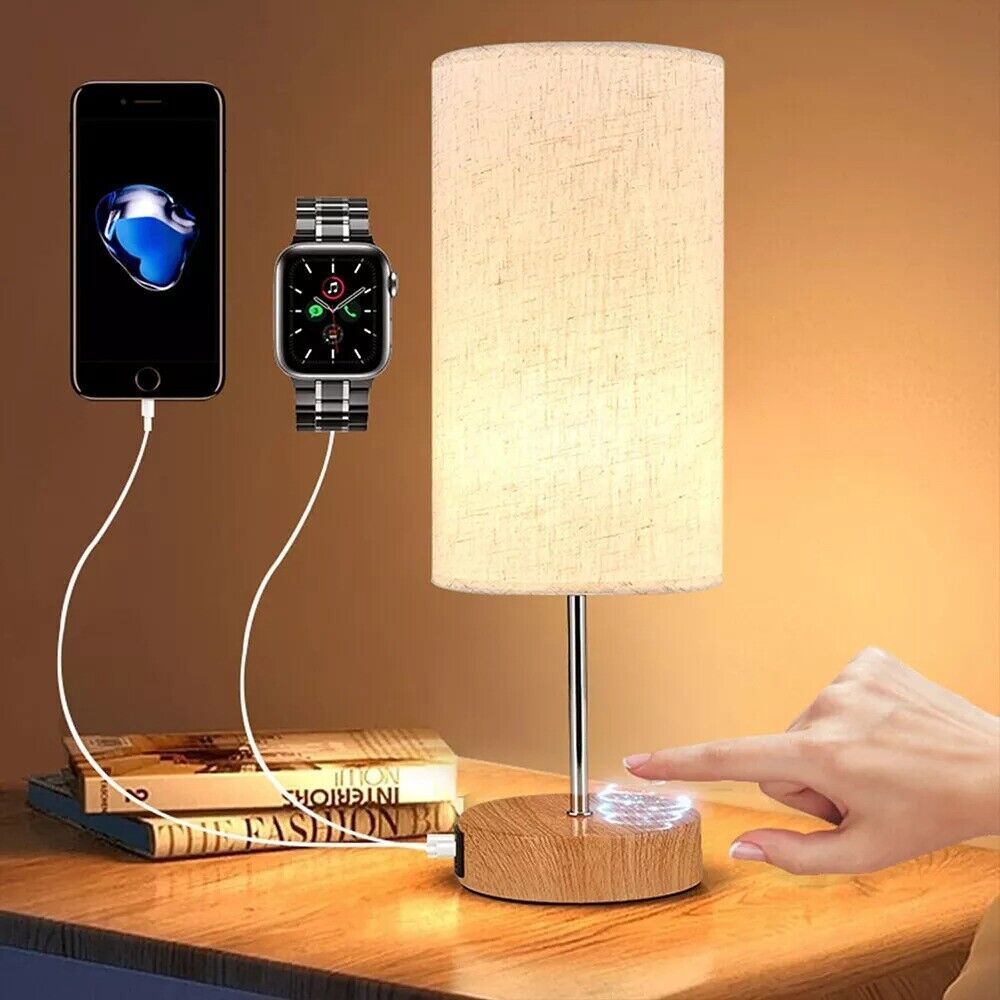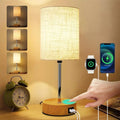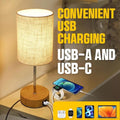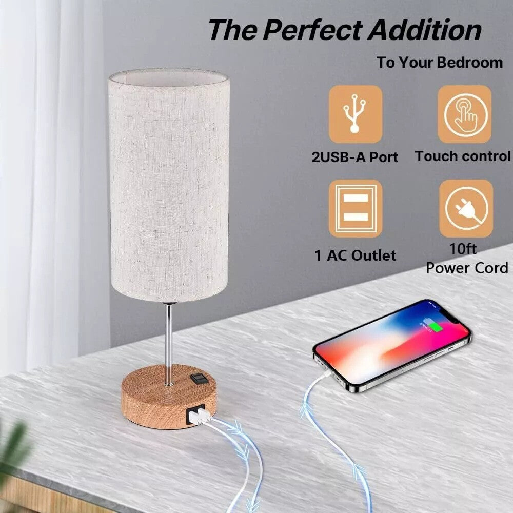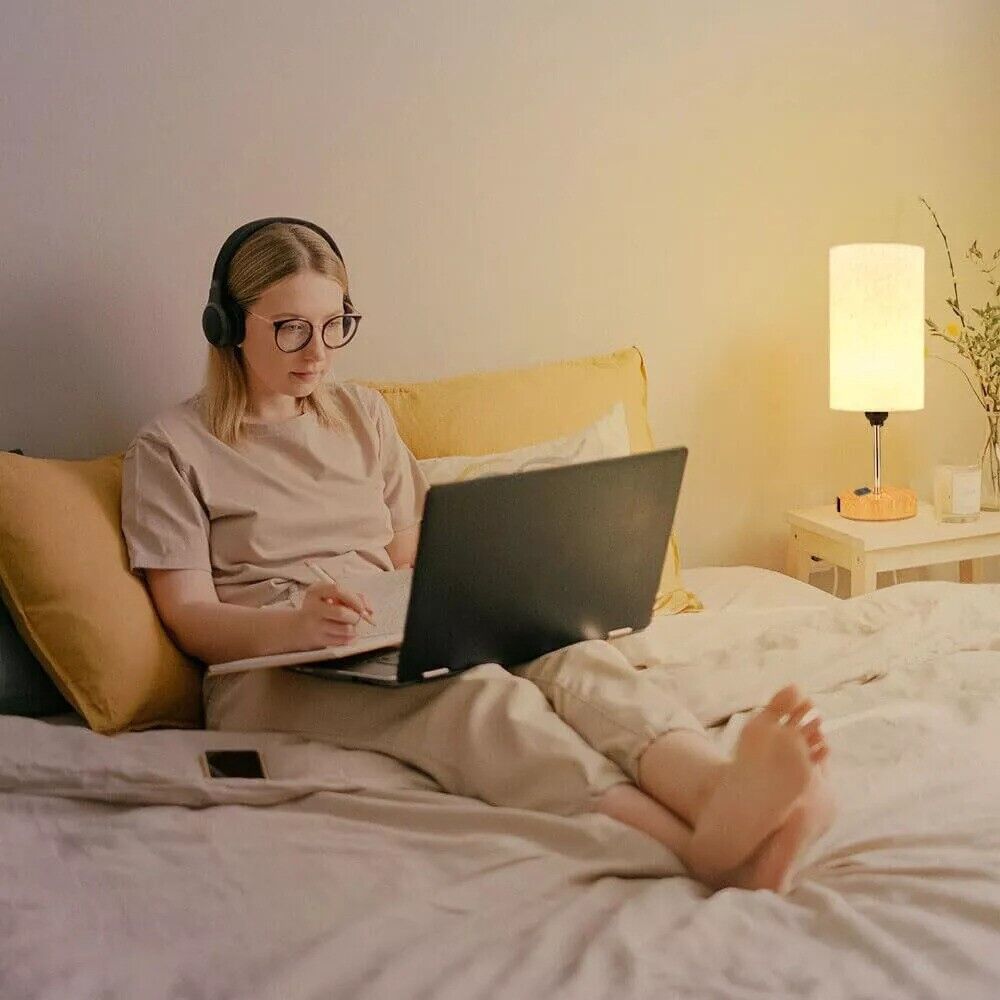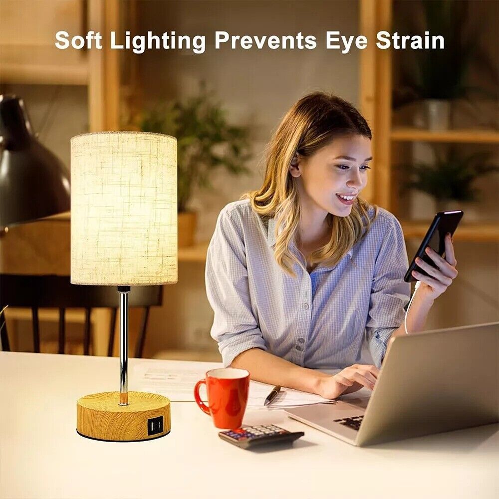 ✅ Premium Linen Shade & Wooden Base – The soft linen shade diffuses light gently, reducing glare, while the sturdy wooden base houses the USB ports for a sleek, functional design.
