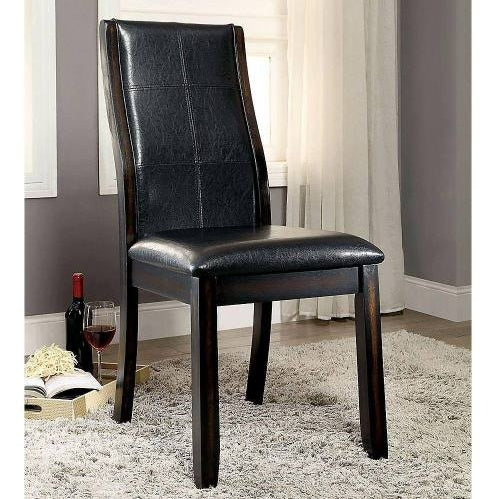Product Name:Transitional Dining Room Side Chairs Set of 2pc Chairs only Brown Cherry Unique Curved Back Espresso Leatherette Padded Seat