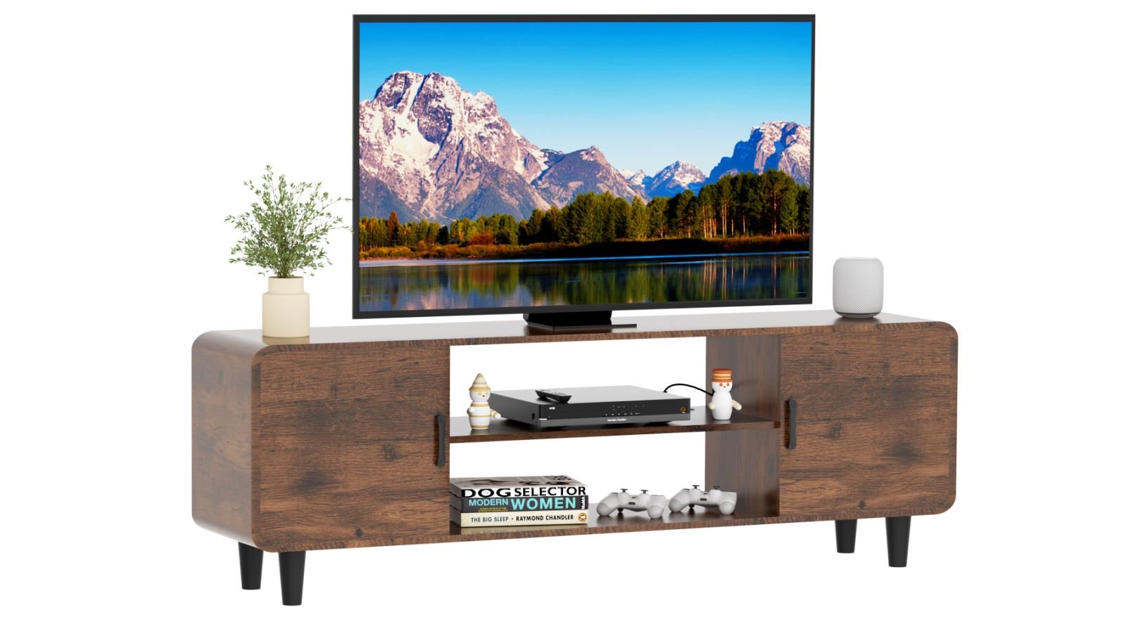 TV Stand For 55 Inch TV, Entertainment Center With Storage Cabinets, Soft Hinge Door With Handle, Media TV Console Table For Living Room Bedroom, Rustic Brown