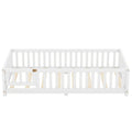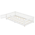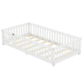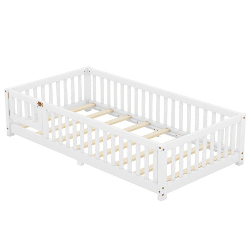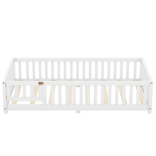 Twin Size Bed Floor Bed With Safety Guardrails And Door For Kids, White