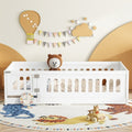 Twin Size Floor Bed With Heightened Safety Guardrails And Door, Solid Wood Bedframe With Rails For Girls, Boys, Teens, Child Bedroom, Kids Playroom, No Slats Included, White