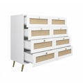 White Color 8 Drawers Chest Of Drawers With Rattan Drawer Face Golden Legs And Handles