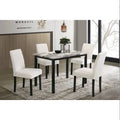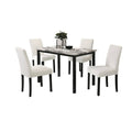 Product Name:White Color Wool Fabric Chairs Faux Marble Top Table 5pc Dining Set Kitchen Dinette Cushions Upholstered 4x Chairs Dining Room