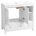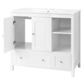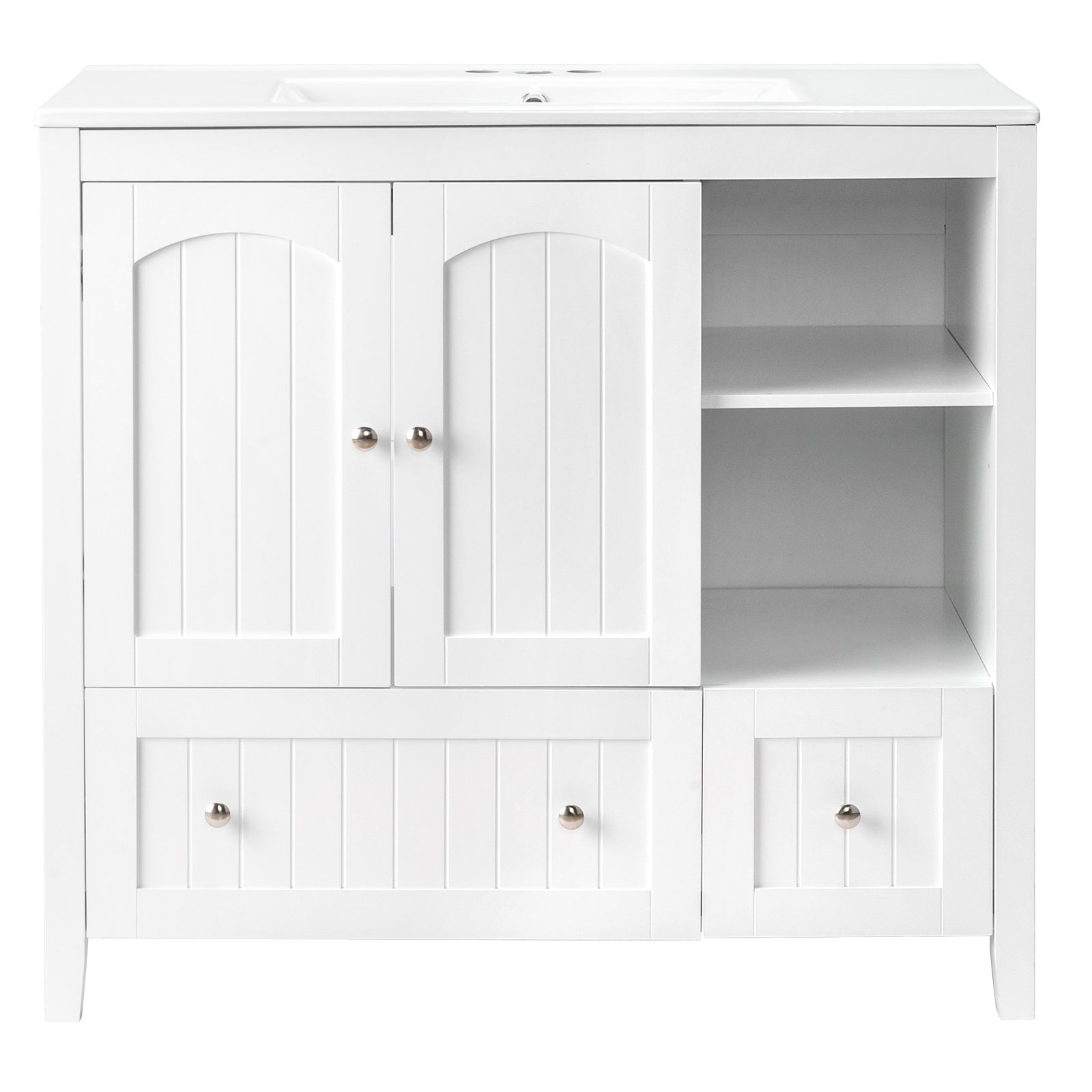 White MDF Painted Double Door Double Drawer With Masking Strip Basin Cabinet 91x46x82cm