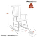 Relax in style with our Patio Rocking Chair, crafted from solid wood and designed for both comfort and elegance. This white wooden rocking chair is perfect for your garden, backyard, balcony, or indoor spaces. Its ergonomic design, sturdy construction, and timeless aesthetic make it a delightful addition to any setting, providing you with a cozy spot to unwind and enjoy your surroundings.