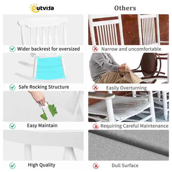 3. Premium Solid Wood Construction: Crafted from high-quality poplar wood, this rocking chair is built to last. Its stable structure, smooth surface, and resistance to deformation ensure durability and longevity, making it a timeless addition to your home.