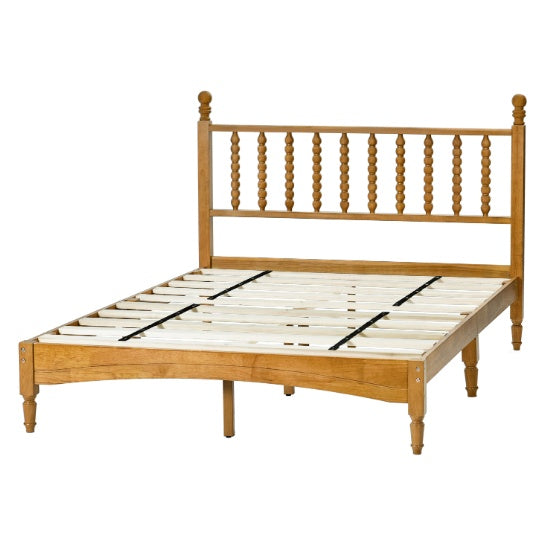 Product Name: Wooden Bed Frame with Spindle Headboard, Solid Rubberwood Base with Wooden Center Support, 1000 lb Capacity, Easy to Assemble, No Spring Mattress Required, Full Quality-Rustic Oak