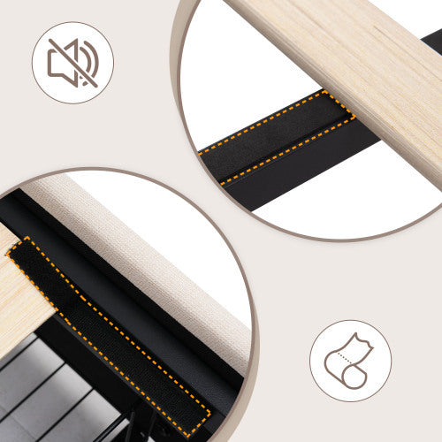 - Praktikabilität trifft Design: Bett bringt elegantes Design und höchsten Komfort gekonnt in Einklang. Dekorative Zierknöpfe veredeln das Kopfteil und geben ihm einen modernen Touch.Das Gestell des Bettes besteht hauptsächlich aus Eisen, ist langlebig und hat eine Tragfähigkeit von bis zu 600 LBS.Die zusätzliche Stützbeine der Mittelstange können die zuverlässige Stabilität des Bettes gewährleisten.