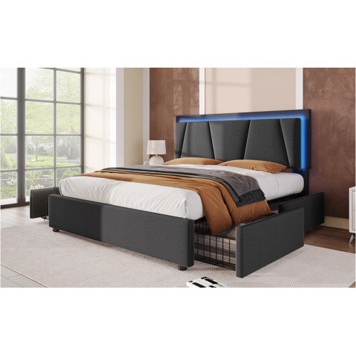 Product Name:Polsterbett mit LED-Beleuchtung und 4 Schubladen,Höhenverstellbarem Kopfteil,Doppelbett 160x200cm Stauraumbetten Bettgestell, Lattenrost aus Holz, Grau (Mit Matratze)